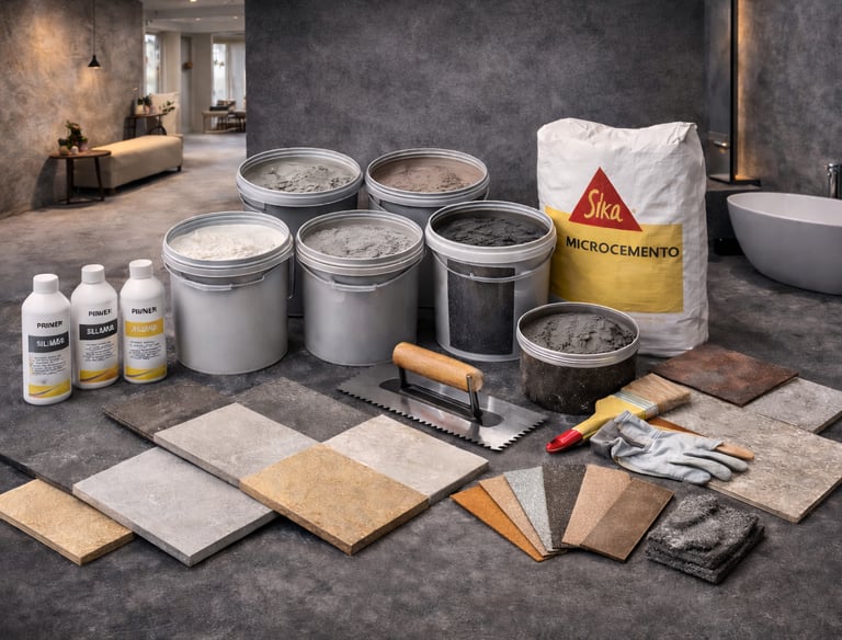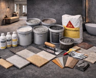 Microcemento profesional en distintos acabados y tonalidades. Materiales seleccionados que aplicamos con técnica experta para garantizar un resultado uniforme y duradero.